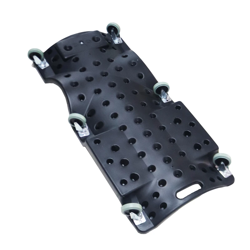 2. سیستم چرخ پیشرفته: این برانکارد تعمیرگاهی مجهز به ۶ چرخ دوار ۳۶۰ درجه از جنس پلیاورتان با هسته فولادی است. این چرخها ویژگیهای منحصر به فردی دارند: